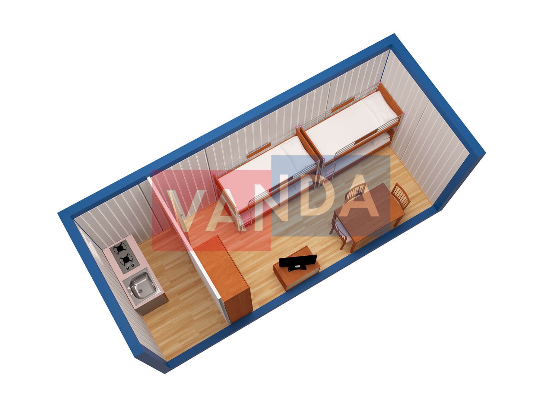 Металлическая бытовка с кухней в тамбуре 5,85 x 2,4 - Оргалит ДВП